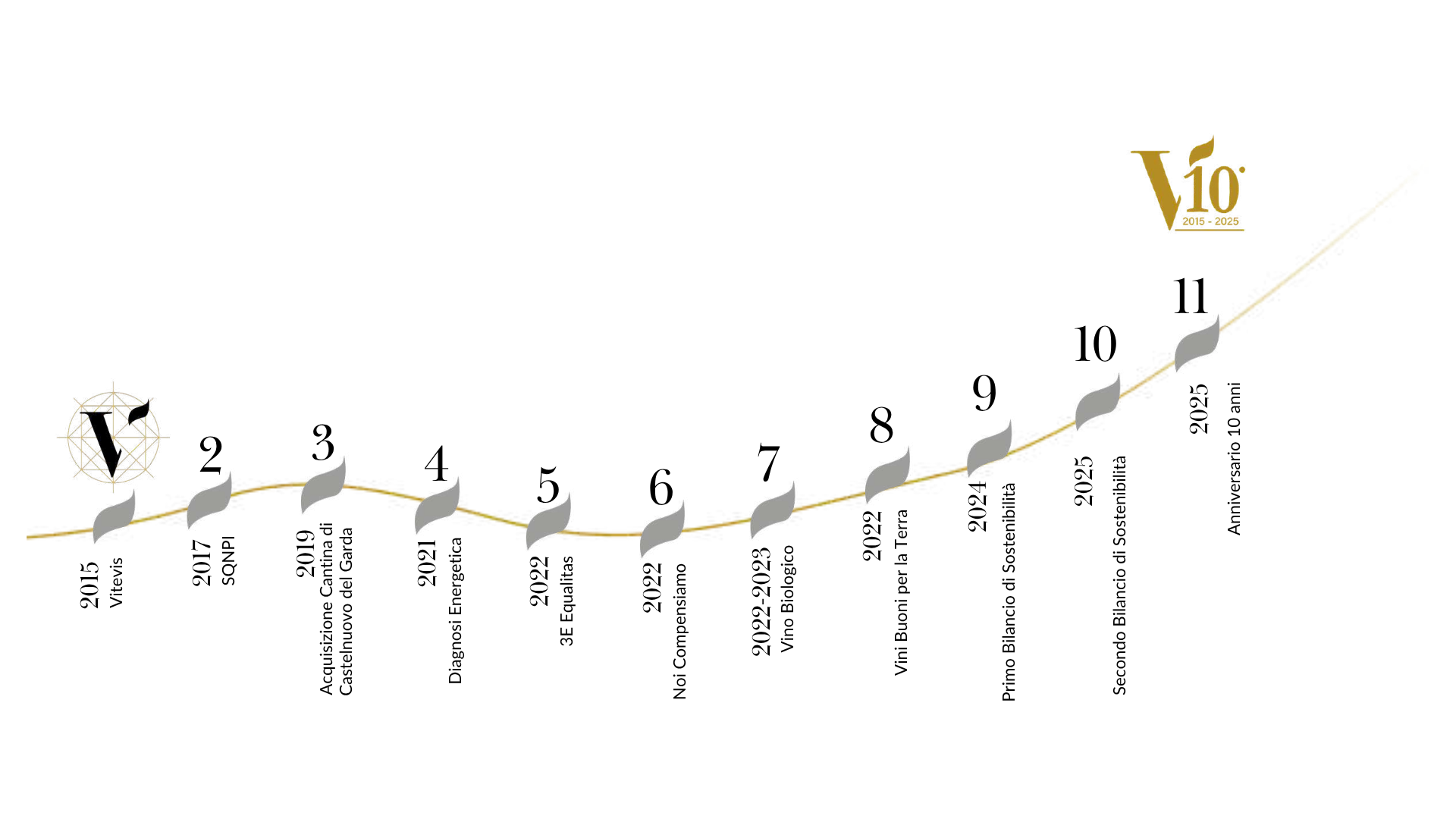Nel corso del 2025 abbiamo raggiunto un importante traguardo: a partire da gennaio tutta l’energia elettrica acquistata da Vitevis proviene al 100% da fonti rinnovabili certificata con Garanzia d’Origine (GO). In tutte le cantine sono installati impianti fotovoltaici che consentono di generare energia pulita direttamente in loco, riducendo in modo significativo il fabbisogno di energia prelevata dalla rete.